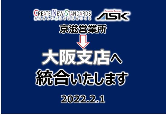 【2月】京滋営業所 大阪支店への統合のお知らせ